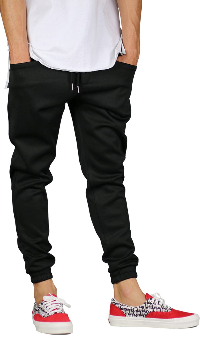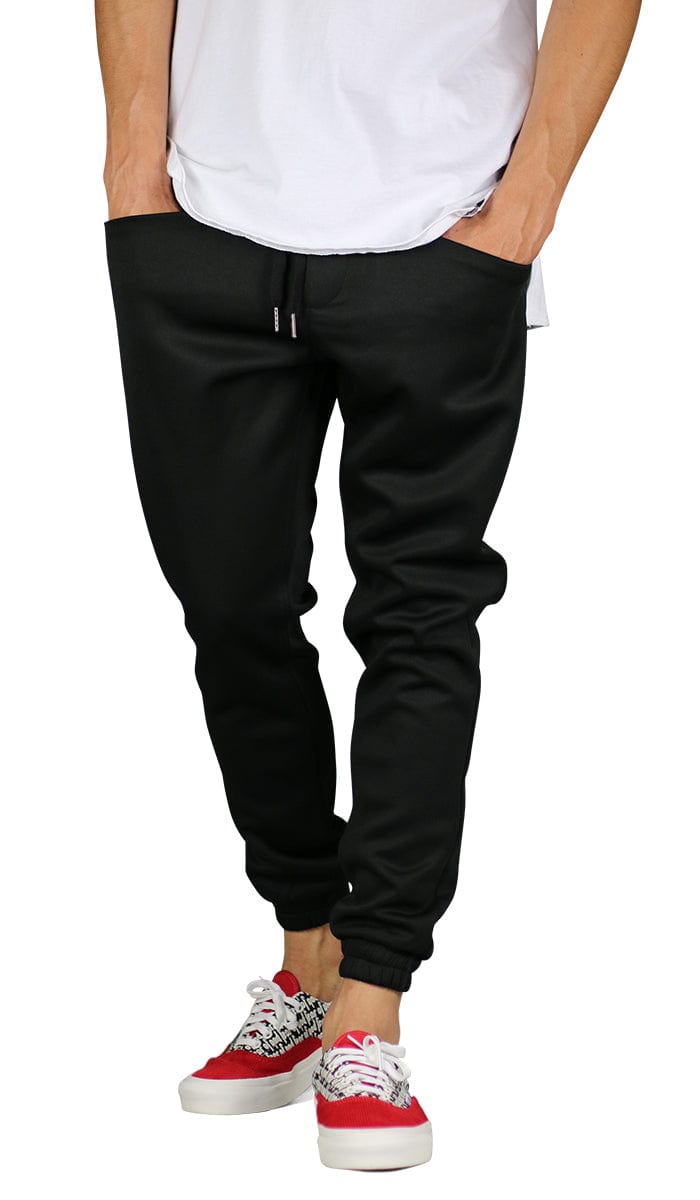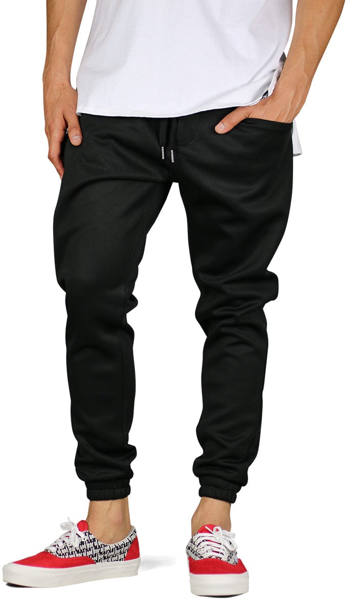 - Snug-fitting track joggers feature a tapered leg silhouette in neoprene for a modern, sporty look